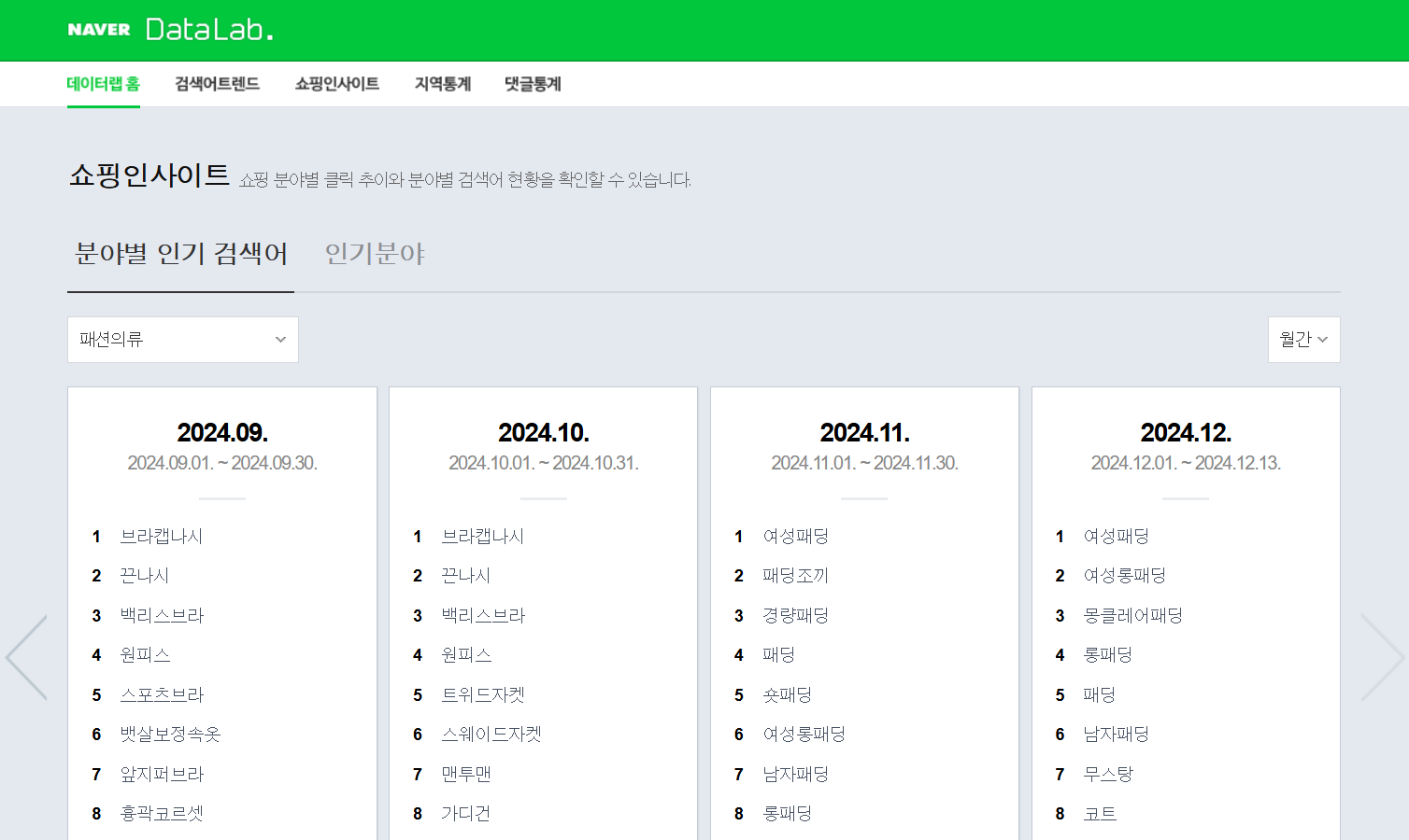 만약 패션쪽 창업을 생각하신다면 11월 부터 사람들이 패딩을 찾기 시작한 다는것을 알 수 있고 우리는 한발 빠르게